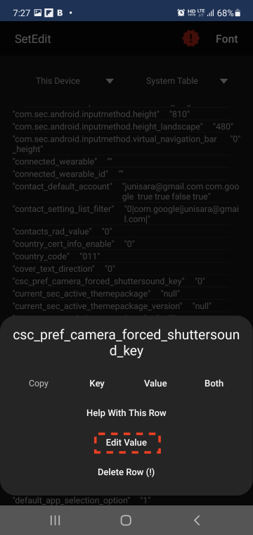 갤럭시폰의 설정값을 변경하기 위해서 setedit라는 앱을 설치해야 합니다.