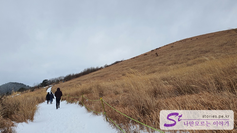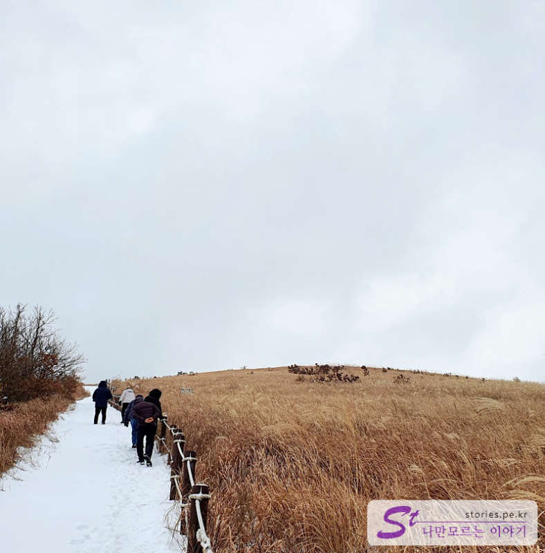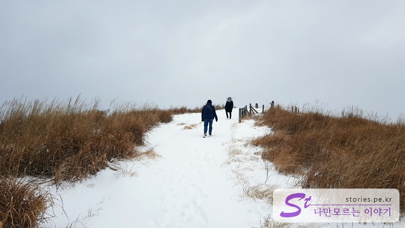 갈대와 어우러진 눈길을 걸어 올라가는 길입니다. 눈과 갈대의 어우러짐이 정말 멋집니다. 이때까지는 힘들지 않습니다.