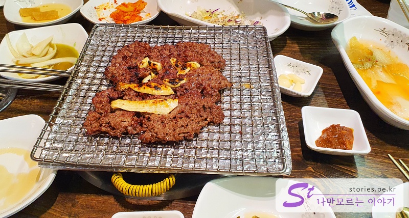 조금만 더 기다리면 석쇠에 구워져서 언양불고기가 나옵니다. 맛은 있는데 양이 너무 작은 것 같네요. 성인 남자라면 한 입 거리밖에 안될 것 같아요.