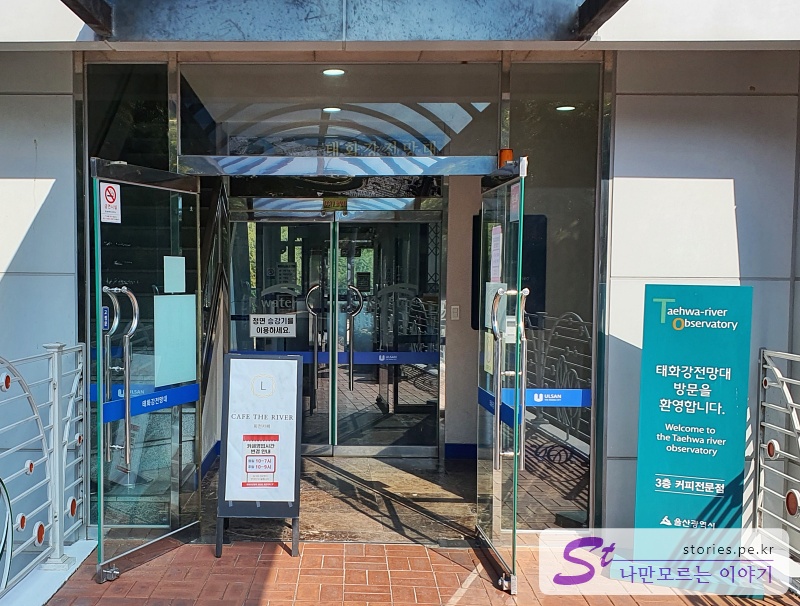 태화강을 올라와 전망대쪽을 보면 주차를 할 수 있는 주차장도 있고 커피를 마실 수 있는 커피전문점도 있습니다.