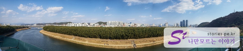 파노라마 뷰로 촬영을 해봤습니다. 전망대가 강 위에 있어서 반대쪽 십리대숲인 대나무숲을 찍을 수 있습니다.