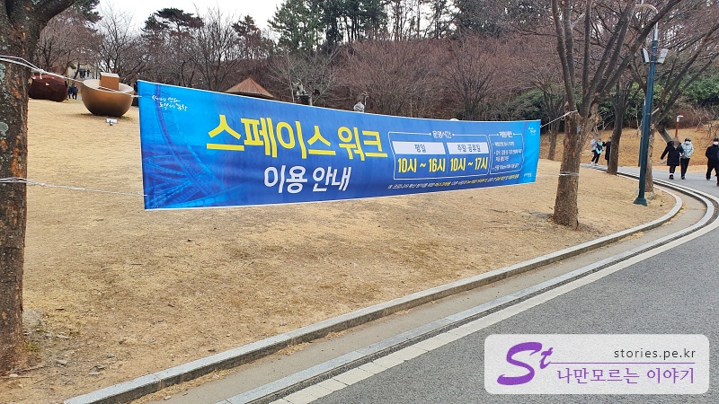 가다 보면 스페이스 워크의 이용안내가 있습니다. 평일에는 10-16시, 주말, 공휴일에는 10-17시까지 운영을 한다고 하네요.