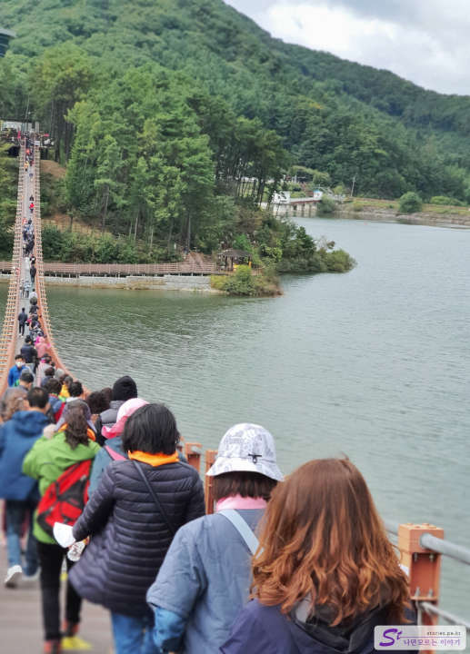 빨간 원형의 방향 중 2번과 3번 사이가 마장호수 출렁다리입니다. 여기는 꼭 건너봐야 하는 구간입니다. 바람에 약간씩 흔들리는 다리라 스릴 있고 좋습니다.