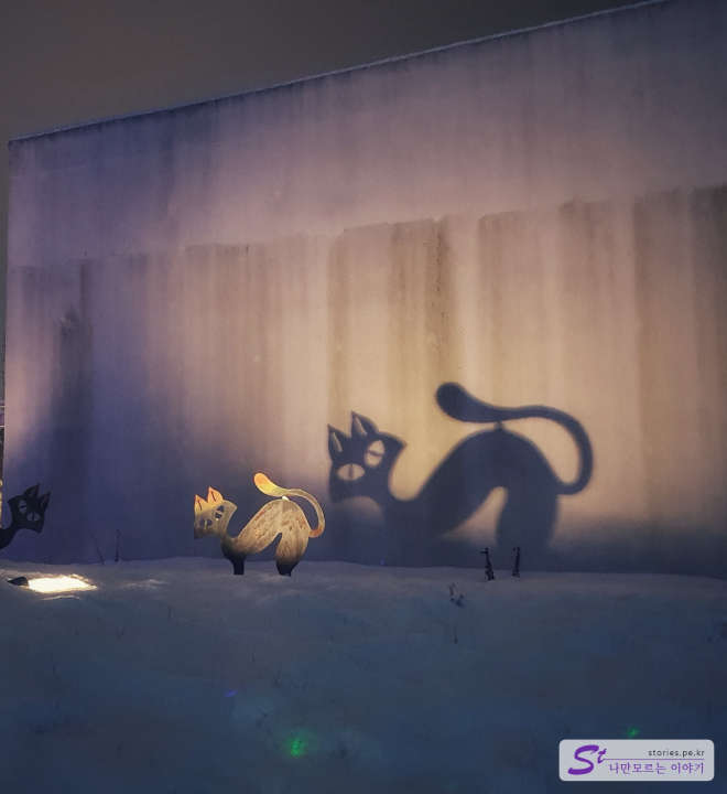 이쁜 도둑고양이입니다. 고양이 상보다는 그림자가 더 느낌이 있네요. 그림자 보라고 만들어 놓은 것이겠네요.