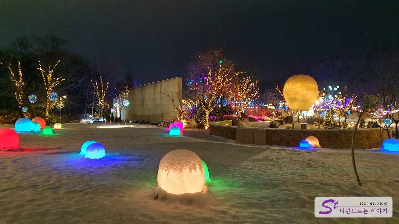 이곳도 눈이 쌓여서 느낌이 더 있습니다. 발로 원을 밟으면 빛이 바뀌게 되어 있어서 아이들이 너무 좋아할 것 같네요. 저희도 한참이나 여기서 놀았습니다.