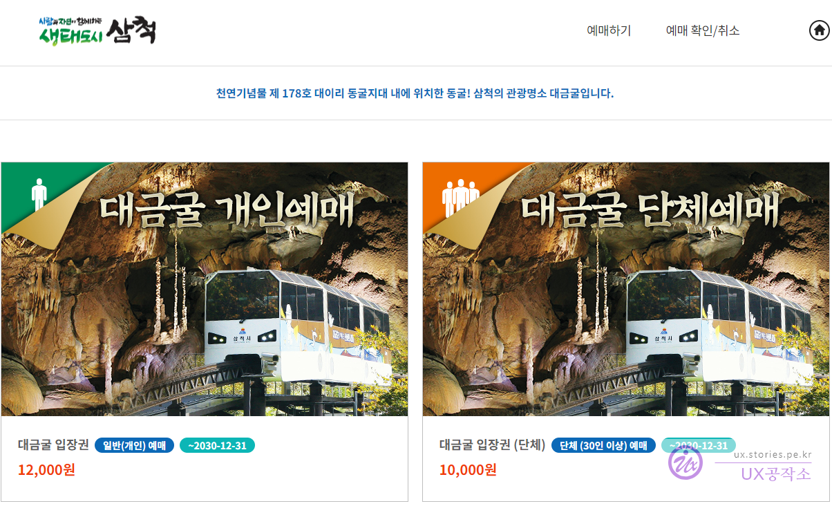 개인과 단체의 금액이 2,000원 차이가 나네요. 저희는 대금굴 개인 예매를 선택했습니다.