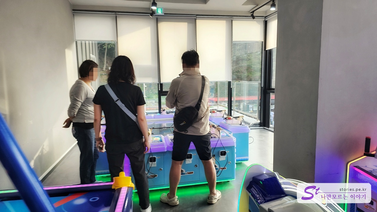 카페의 안쪽으로 조금 들어가면 게임기들도 몇개 있습니다. 어른들이 동심으로 돌아가는 시간이였습니다.