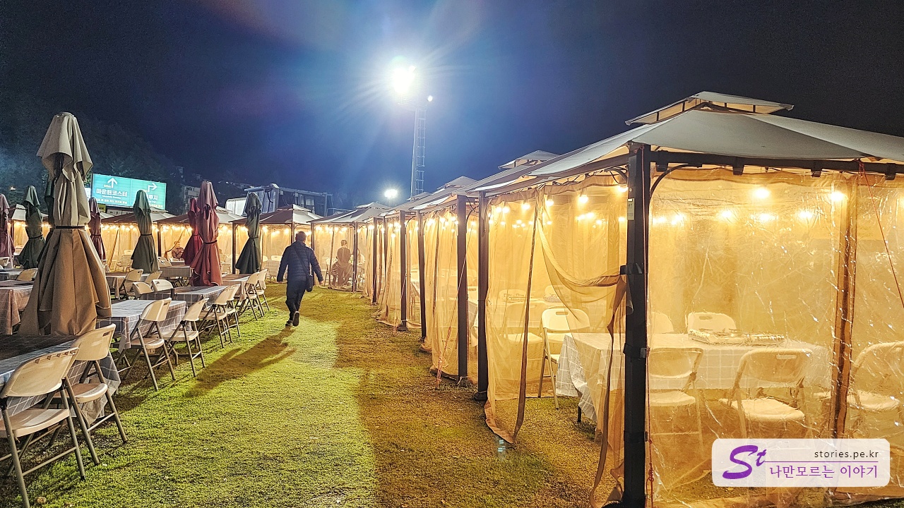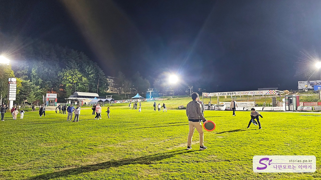 저~ 위쪽에는 글램핑장도 보이네요. 저녁 9시쯤 됐는데 조명 때문에 그런지 사람들이 많이 나와서 즐기고 있었습니다.