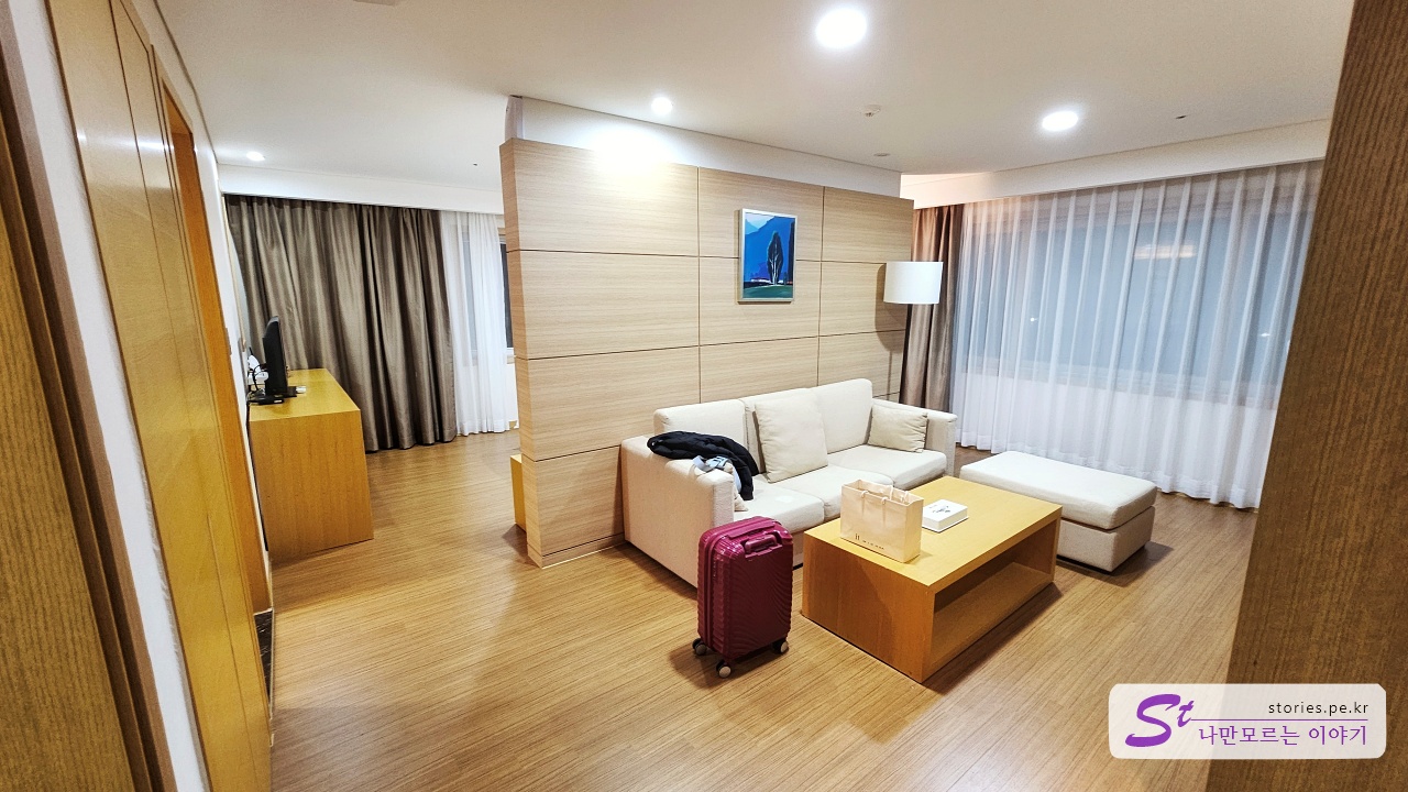 복도를 지나 배정받은 스위트룸으로 들어갔습니다.