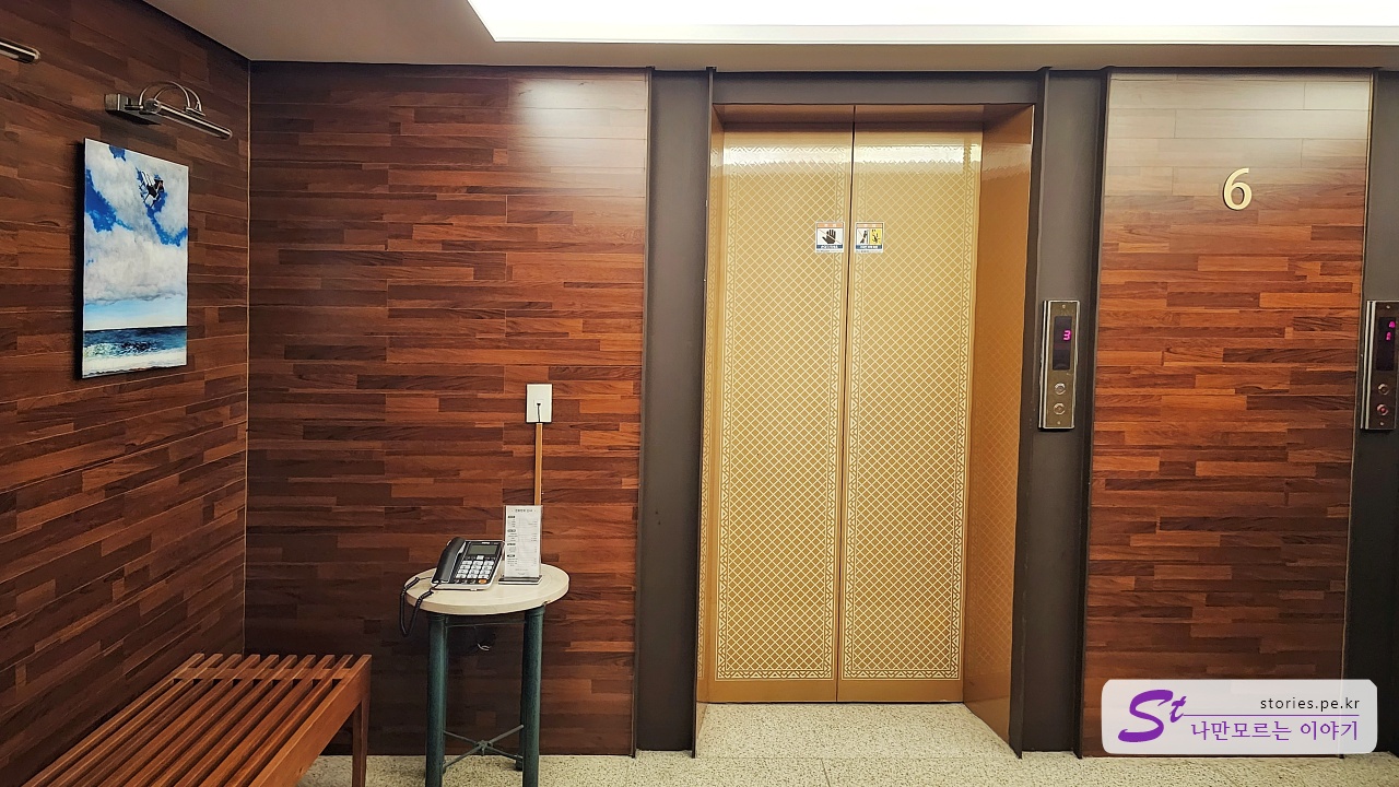 체크인하는 모습은 찍지 못했습니다. 원래는 디럭스 더블로 구매를 했으나 평일이라 그런지 스위트룸으로 업그레이드를 해주었습니다. 횡재!!! 체크인을 하고 로비의 오른쪽으로 걸어가다 보면 숙소로 올라갈 수 있는 엘리베이터가 있습니다.