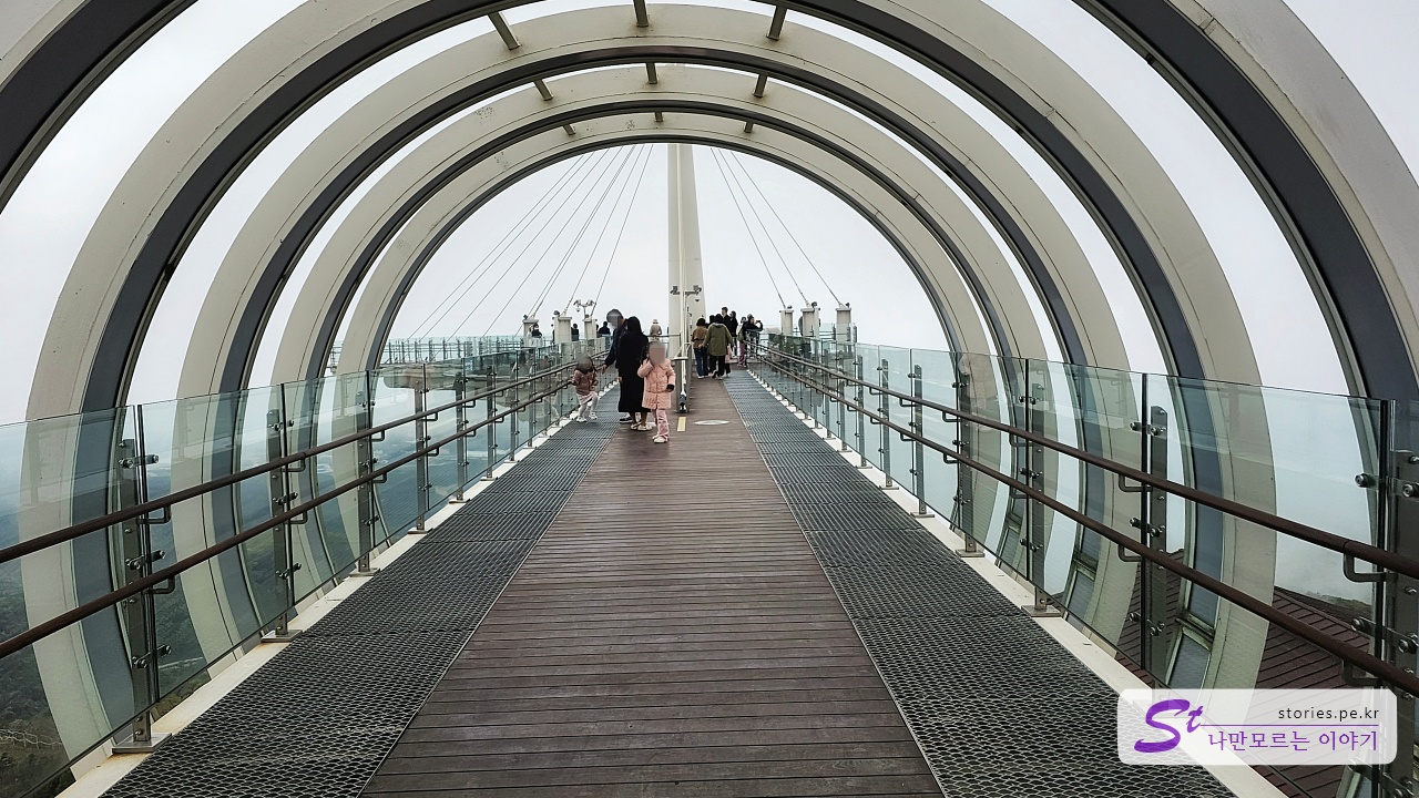 이제 스카이워크로 나가 보겠습니다. 원형길을 통과하여 밖으로 나가면 하늘에 떠있는 듯한 느낌을 받게 됩니다.