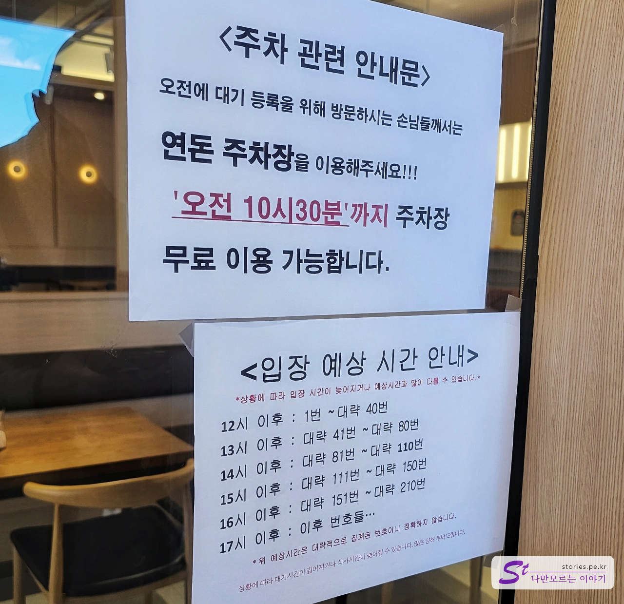 오전 대기 등록을 위해 방문할 경우 10시 30분까지 무료로 주차를 할 수 있게 해 놨습니다. 나름 합리적인 모습이네요. 실제 식사의 시작은 12시부터 하게 되고 입장 시간은 대략 위의 사진과 같습니다.