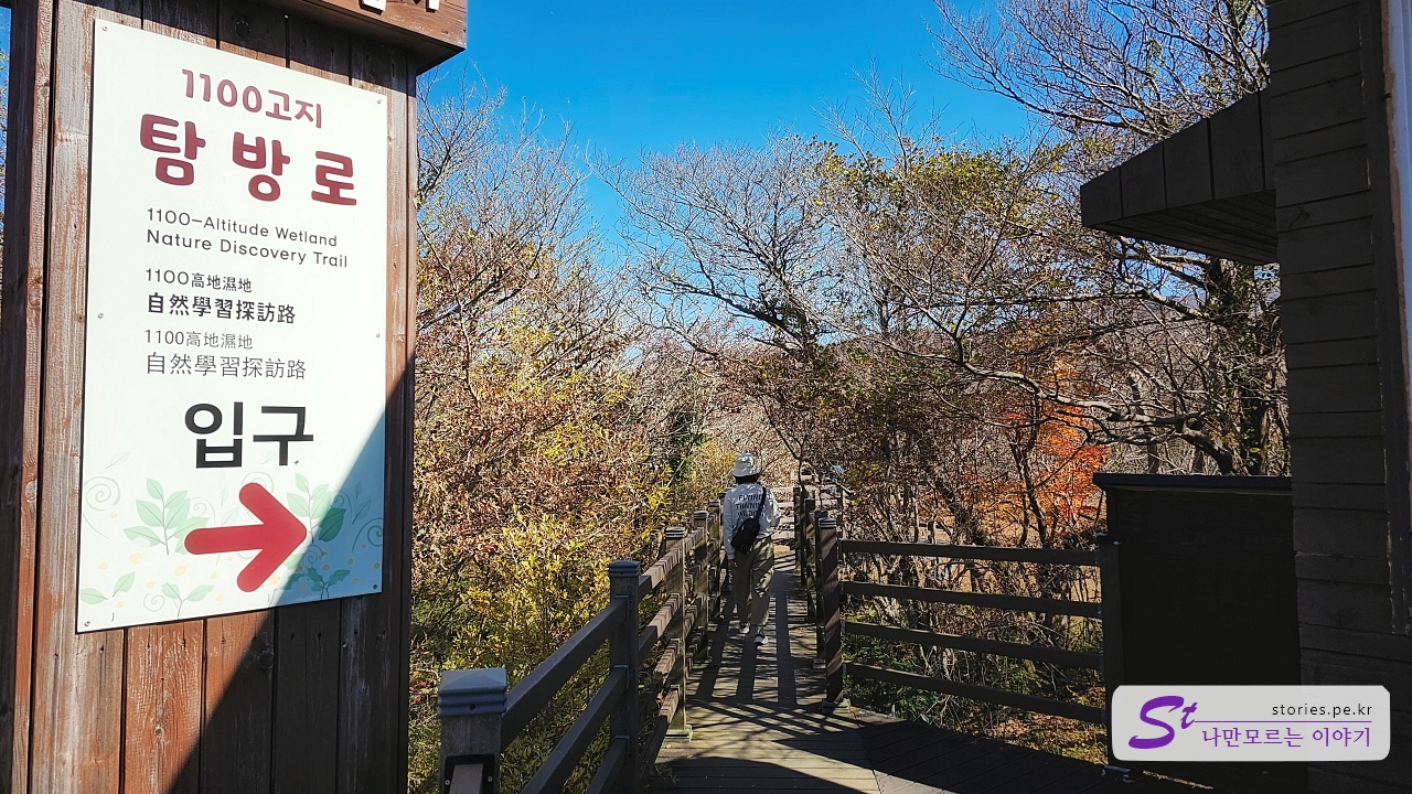 주차장에서 행길을 건너면 습지로 들어갈 수 있는 데크가 있습니다. 탐방로는 걸어서 대략 10~30분 정도의 순환 데크로 되어 있습니다. 사진에서 좌측의 길이 탐방로 입구입니다.