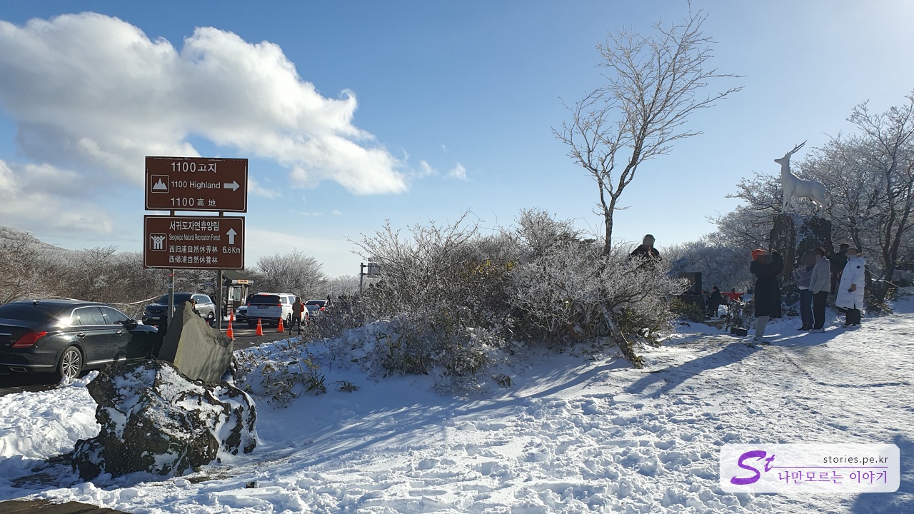 오전에 한돈에 예약을 걸어놓고 시간이 남아서 1100고지 습지를 다녀왔습니다. 중문에서 약 30분 정도 소요가 되는 거리입니다. 원래 1100고지는 겨울에 눈이 왔으나 도로가 통제되지 않았을 때 올라가는 길이 정말 압권인 길입니다. 아래 사진 3개는 올해 1월에 눈이 한참 왔을 때 1100고지에서 찍은 사진입니다.