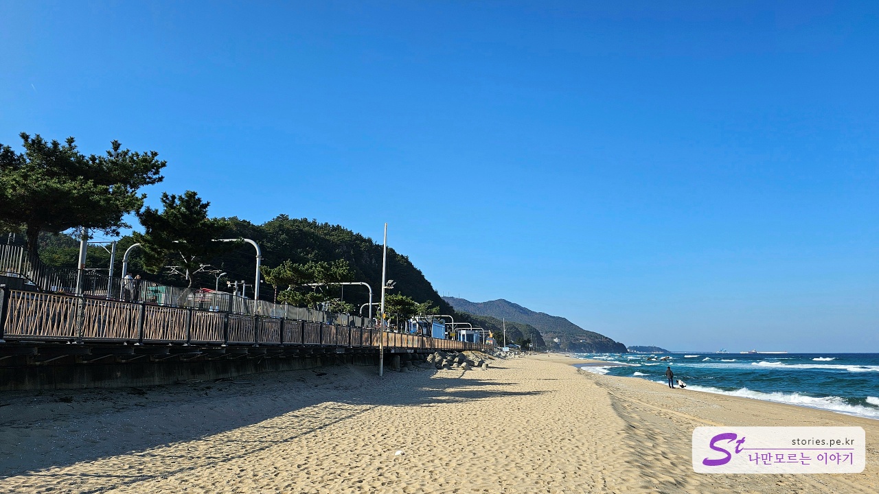이 길 아래로 내려가면 바로 바닷가로 갈 수 있습니다.