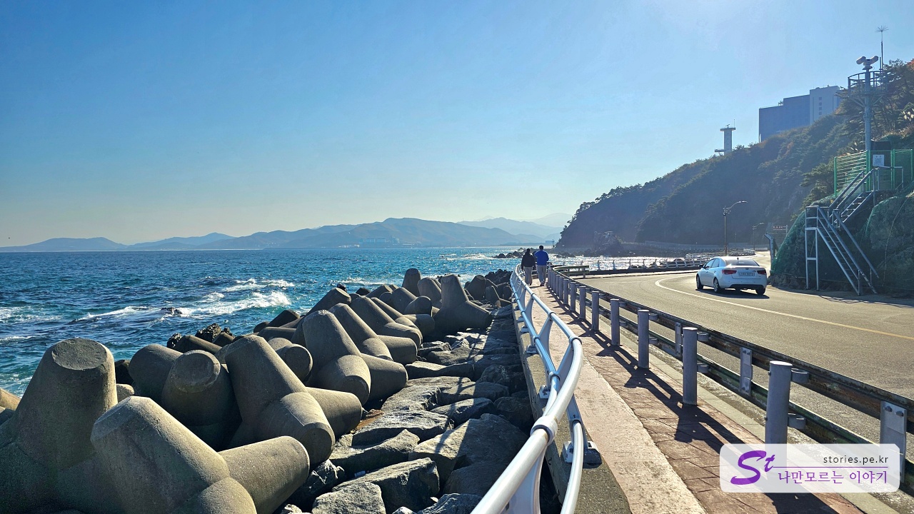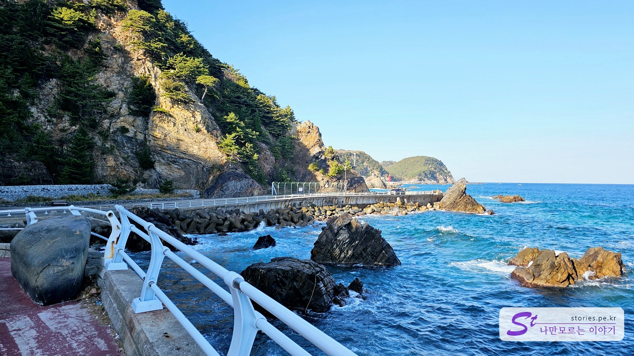 헌화로 드라이브 길입니다. 길 옆에 잠깐 차를 세울 수 있는 공간이 있습니다.