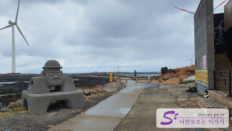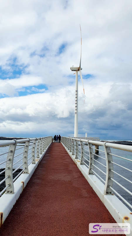 조금 더 걷다보면 풍력발전기와 연결된 다리를 만나게 됩니다. 다리 입구정도에 다가서면 다금바리를 만나게 됩니다.