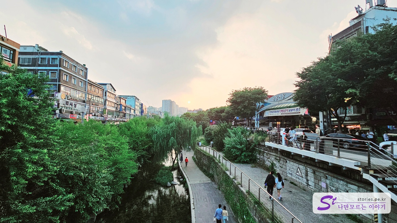 저희는 청계천 쪽에서 출발했어요. 왼쪽이 방산시장이고 오른쪽이 광장시장입니다. 광장시장은 다양한 먹거리로 유명하죠.