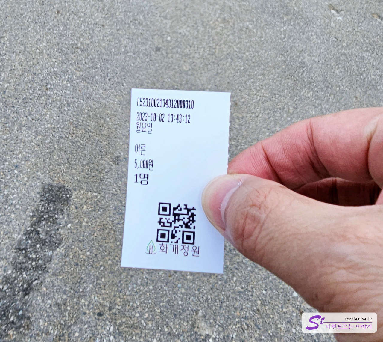 화개정원 입장료는 어른 기준으로 5,000원입니다. 화개정원 입장료는 모노레일 이용료와 별개이기 때문에 먼저 입장권을 구입한 뒤 건물 내부로 들어가서 모노레일을 다시 예약해야 해요.